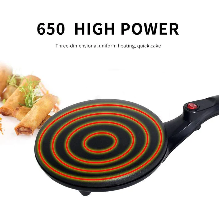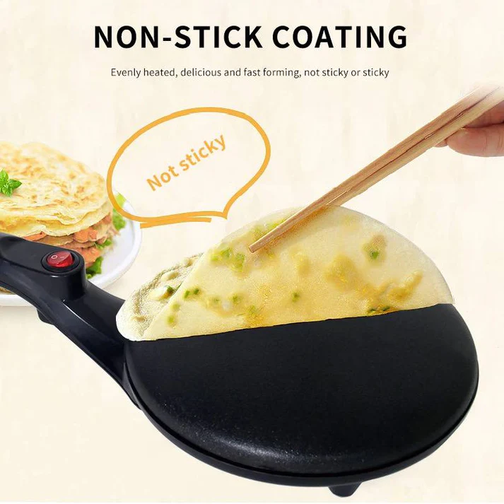 Le Crépier de Sokany permet de créer les meilleures crêpes en moins de 60 secondes, avec une conception complète de style poêle à frire et un long manche pour une cuisson facile. Doté d’un revêtement antiadhésif, cette plaque chauffante offre un fonctionnement sans problème, idéal pour une cuisine rapide. Le Crépier fonctionne avec une simple prise électrique, équipé d’un interrupteur ON/OFF sur la poignée pour une utilisation facile. Avec un contrôle automatique de la température, cette marmite polyvalente à surface plane convient à la cuisson de divers plats. Son revêtement noir classique en fonte d’aluminium lui confère durabilité et élégance, s’adaptant parfaitement à n’importe quel comptoir ou table de cuisine. Un outil idéal pour créer des crêpes délicieuses en toute simplicité.