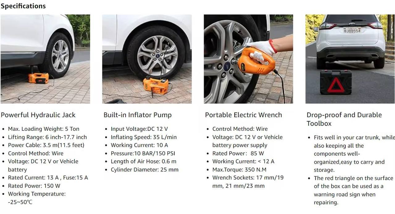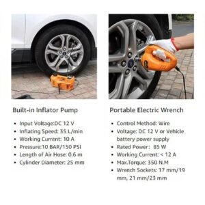 - Usage en garage et à domicile : Adapté à la fois pour un usage professionnel en garage automobile et pour un usage domestique. Il est parfait pour les réparations courantes de véhicules, le changement de pneus, et même les réparations d’urgence en cas de crevaison sur la route.