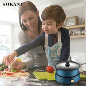 Le revêtement antiadhésif, traité spécialement, garantit une cuisson plus saine. La Cuisinière électrique Sokany, en acier inoxydable, offre une solution fiable et pratique pour des préparations culinaires variées dans une cuisine moderne.