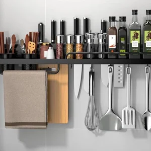 Solution Pratique et Élégante: En reprenant le contrôle de votre espace de cuisine avec cette étagère murale, vous combinez à la fois praticité et style. Elle permet de garder vos ustensiles et épices essentiels à portée de main tout en libérant de l’espace sur vos plans de travail. Son design élégant et moderne en fait un ajout esthétique à n’importe quelle cuisine, tout en offrant une solution de rangement efficace.