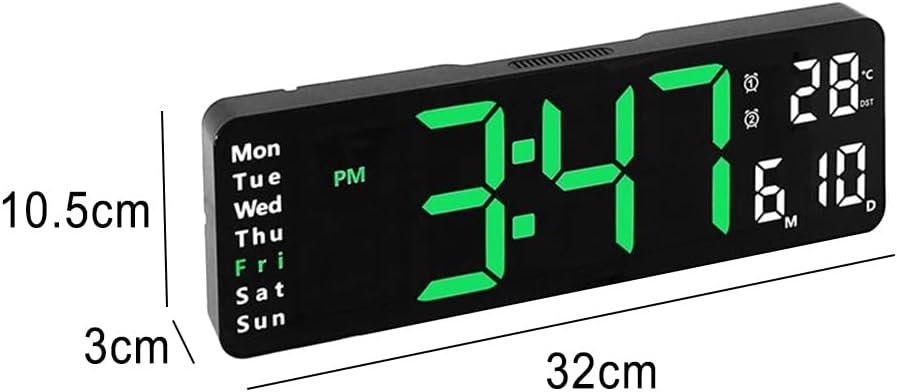 - Affichage Grand Format : Avec son large écran, cette horloge affiche clairement l’heure, la température, la date et le jour de la semaine, vous offrant ainsi toutes les informations nécessaires en un coup d’œil.