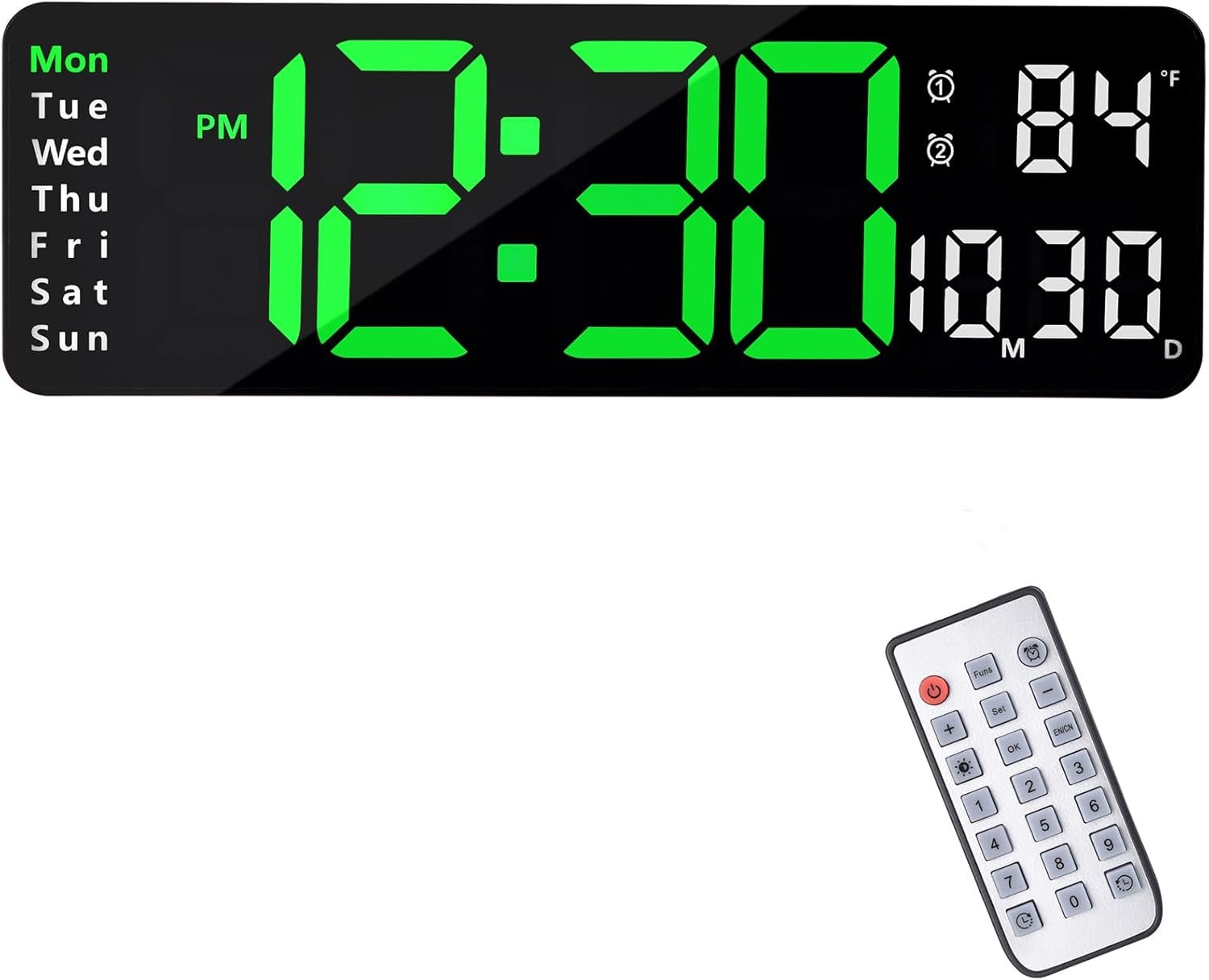 - Télécommande Incluse : Profitez de la facilité de réglage à distance grâce à la télécommande fournie. Ajustez l’heure, modifiez les paramètres d’alarme ou changez l’affichage sans avoir à toucher l’horloge.