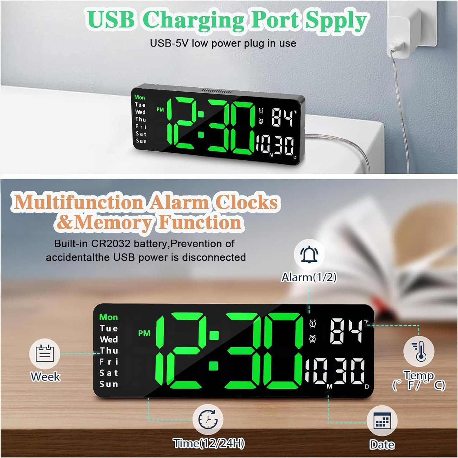 - Double Alarme Électronique : Ne manquez jamais un rendez-vous important grâce à la double alarme. Vous pouvez configurer deux alarmes distinctes pour répondre à vos besoins quotidiens, que ce soit pour vous réveiller le matin ou pour vous rappeler un événement clé dans la journée.